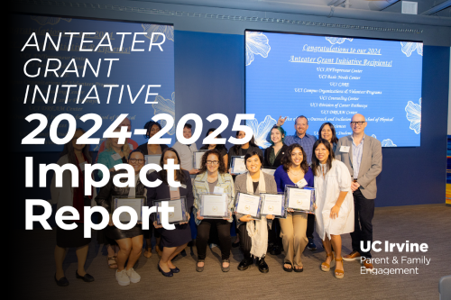 The Anteater Grant Initiative (AGI) is a signature effort of the Parent Executive Board dedicated to advancing student success at UC Irvine. Established in 2018, this grant helps sustain, enhance, and pilot programs that directly benefit students across campus. The grant’s success is celebrated annually in May with an awardee reveal, spotlighting the programs chosen for funding. Open to contributions from friends and advocates of student success, this fund offers a meaningful opportunity for the entire Anteater community to create a lasting impact on programs supporting students.